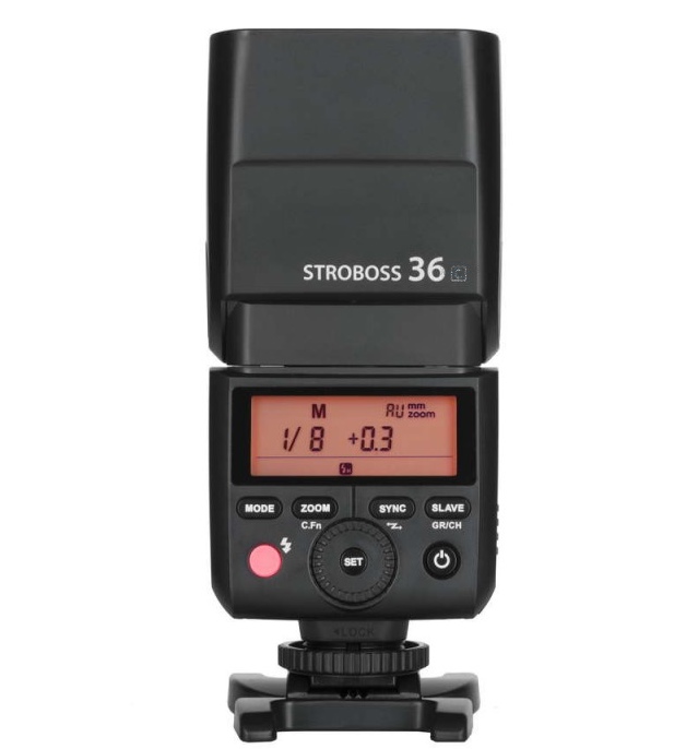 Le Stroboss 36 peut être utilisé dans l'un des trois modes. Le premier mode (TTL) permet la prise de vue avec la mesure automatique de l'exposition au flash et l'utilisation de tous les modes automatiques et semi-automatiques proposés par les appareils photo. Le second - mode manuel (M) - permet à l'utilisateur de choisir la puissance du flash dans la plage de 7-f arrêts par incréments de 1/3 EV.